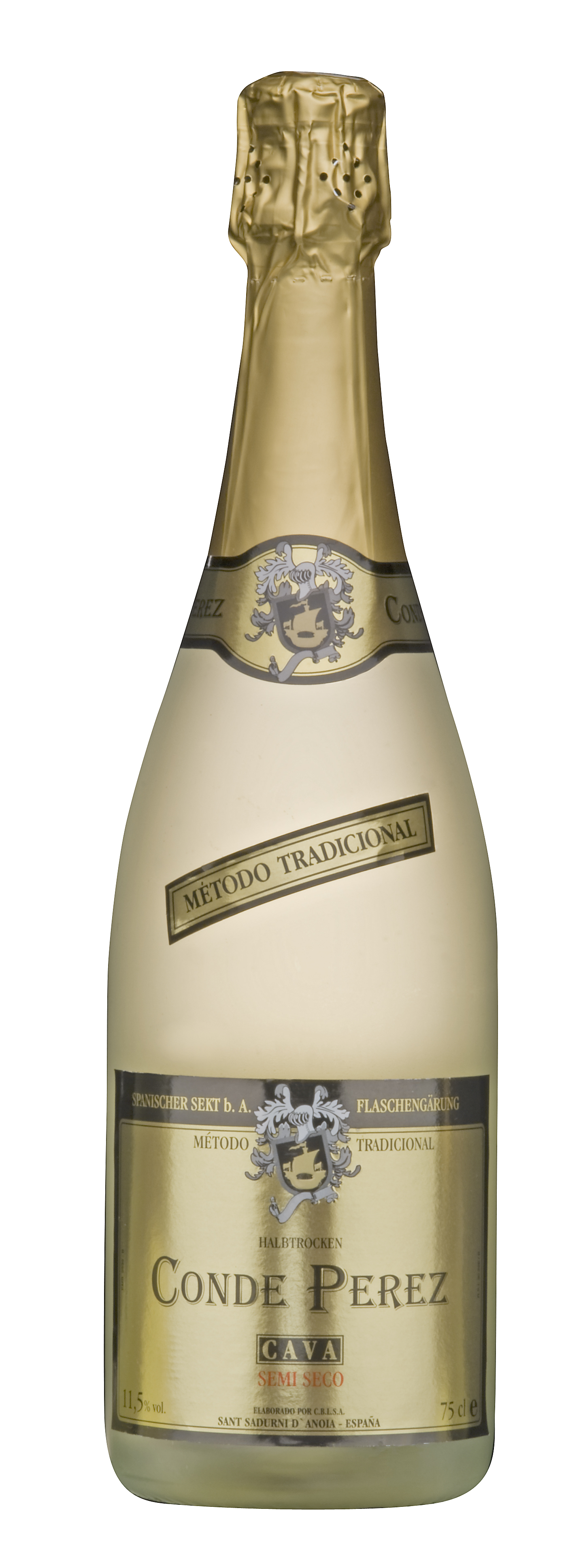 Conde Perez Semi Seco überzeugt durch ein feinperliges, lang anhaltendes Mousseaux, eine fruchtige und frische Nase und einen herrlich halbtrocken und vollmundigen Geschmack.